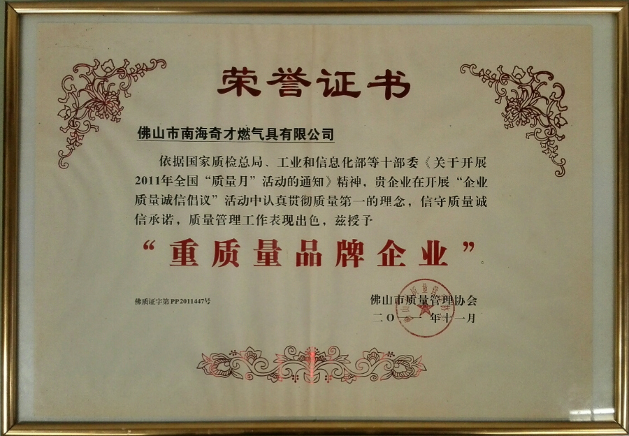 主頁(yè) > 企業(yè)榮譽(yù) > 企業(yè)榮譽(yù) > 重質(zhì)量品牌企業(yè)證書