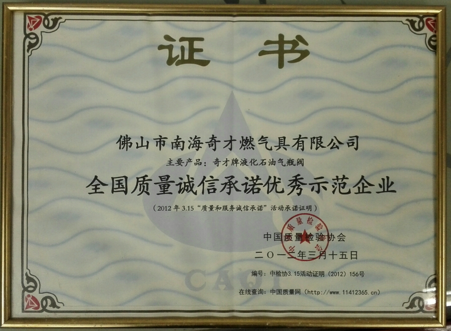 主頁 > 企業榮譽 > 企業榮譽 > 全國質量誠信優秀示范企業證書